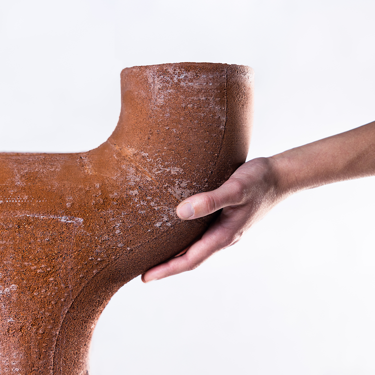 Biozement wird mithilfe von Bakterien hergestellt, die recycelte Ziegelsteine mit Calciumcarbonat verbinden. Die Produktion erfordert keinen Brennvorgang und emittiert kein CO2. Durch die Kombination von Biofabrikation mit digitalen Werkzeugen entstehen neue Ansätze der Formgebung.