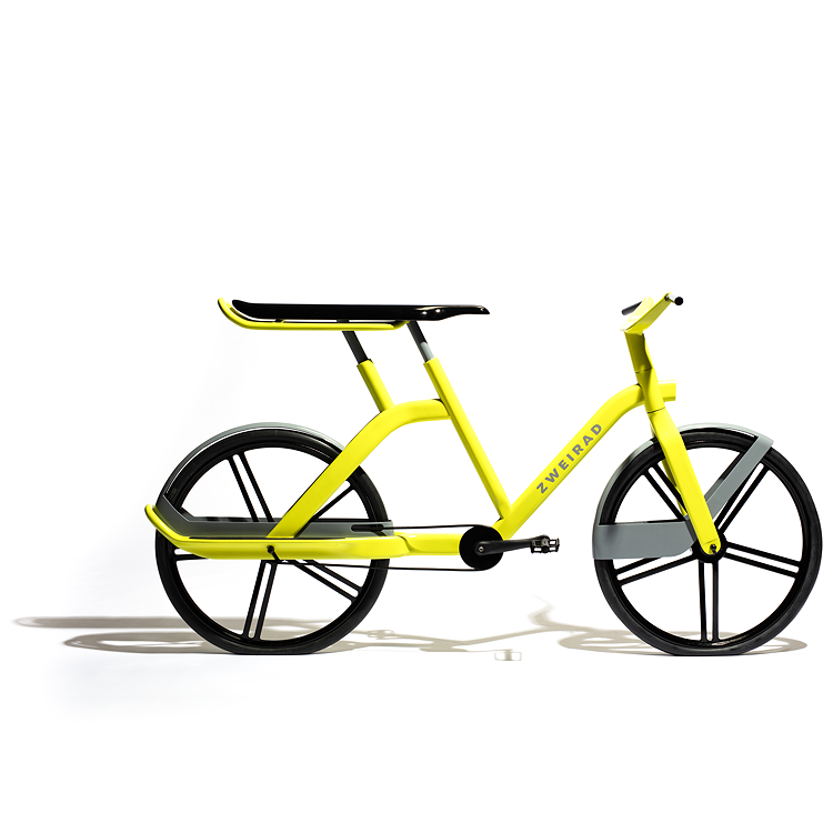 Das Konzept ZweiRad kombiniert das herkömmliche Fahrrad mit der Möglichkeit, eine zweite Person zu befördern. Um eine bequeme Fahrt zu garantieren, verfügt es über den charakteristischen langen Sattel, sowie einen Handlauf und eine Fußstütze für die zweite Person. Die speziellen Schutzbleche bieten Schutz vor einem möglichen Kontakt der Füße mit den Rädern. Der vergrößerte Radstand ermöglicht es den Mitfahrenden vor der Hinterradachse zu sitzen und sorgt für eine stabile und sichere Fahrt. Zudem soll der Sharing-Aspekt der gemeinsamen Nutzung von öffentlichen Fahrrädern weitergedacht werden.
